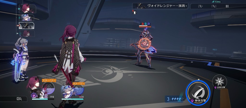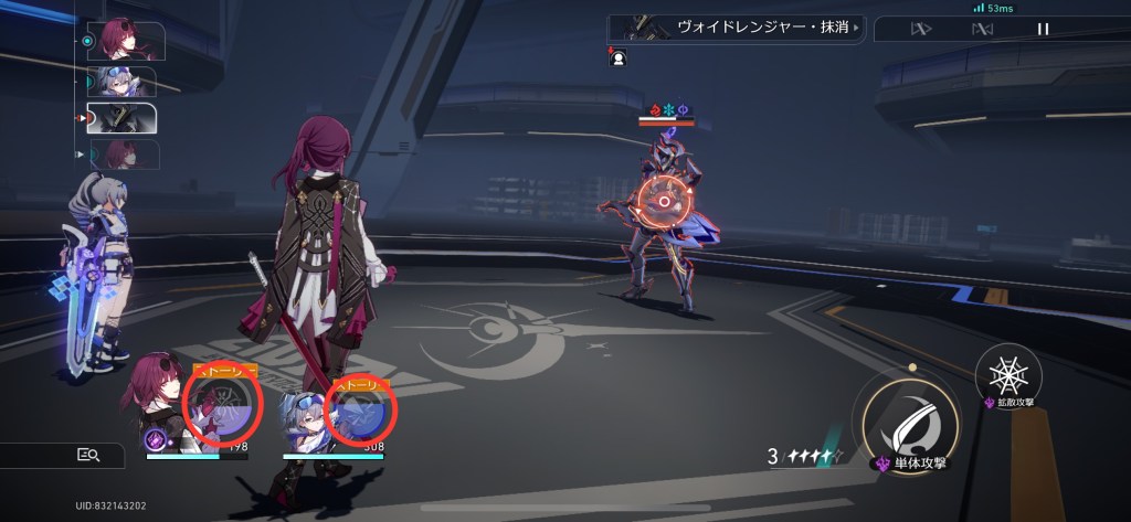 ◯の部分が通常攻撃になるので、これをタップをすれば攻撃に入ります。