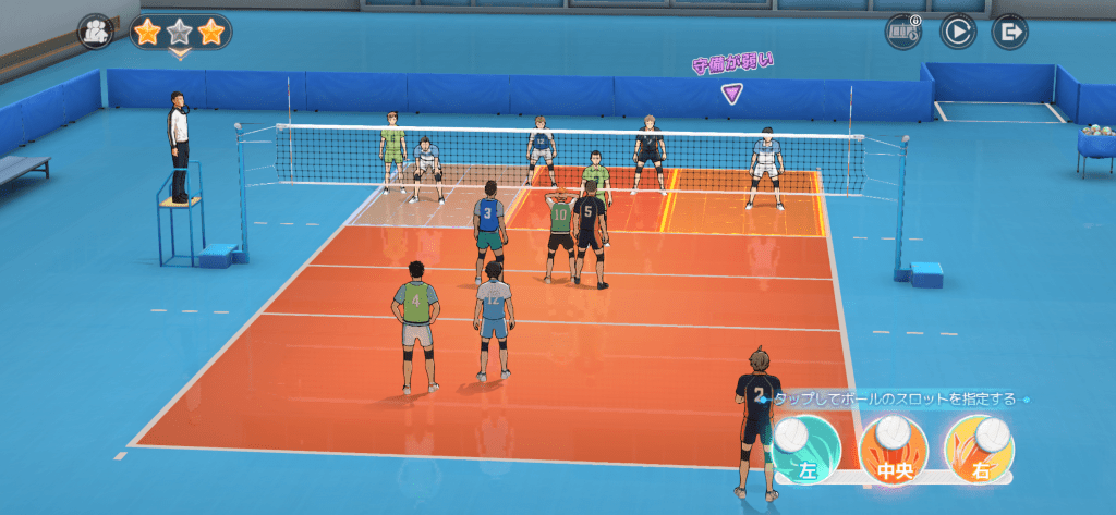 前衛にブロックの得意な選手がいるようならその選手を選択してもいいですし、アタックしてくる選手も相手の選手をみると光っているのでそれに合わせて選択してもいいと思います。