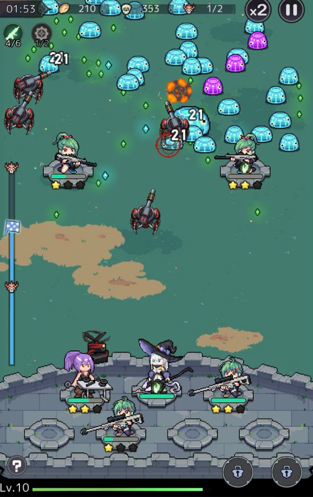 魔女は自動で敵に攻撃してくれるので、召喚、合成を繰り返して敵を全滅させていこう!!