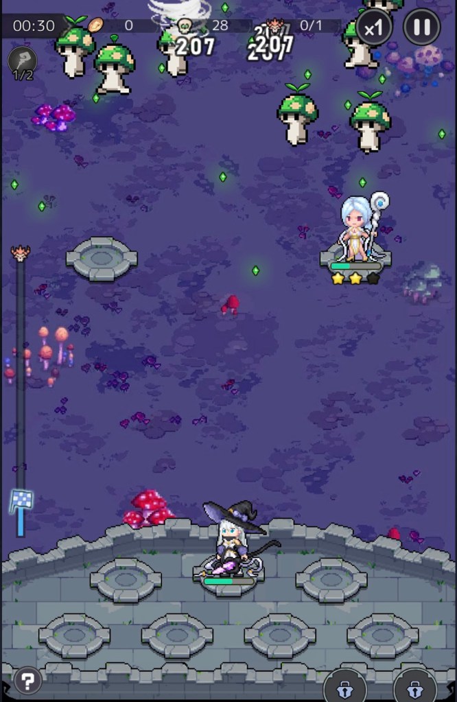 操作はとても簡単で、基本はタップ操作で進んでくれるので、プレイヤーは、タップして敵を倒してGETした経験値を集めて、仲間の魔女をどんどん召喚していきましょう。
