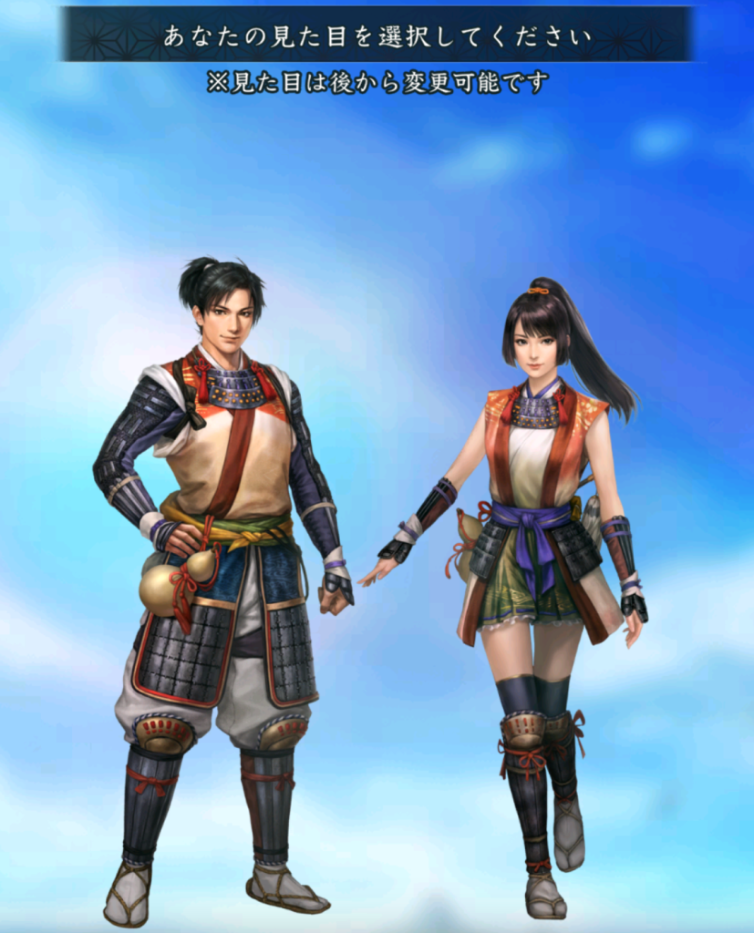 キャラクターを男性または女性から選択しましょう。