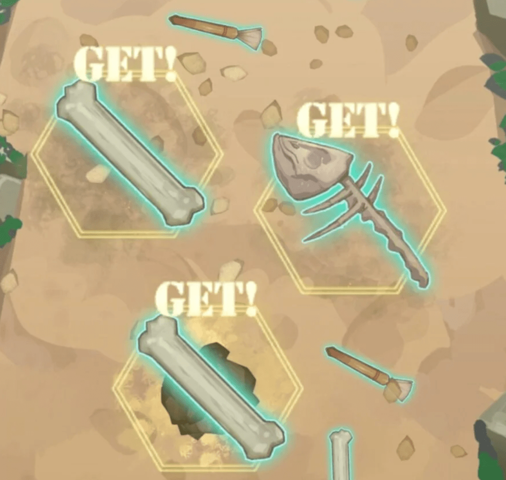 ルールは簡単で、『制限時間内に化石を掘り起こす』、『間違ったものを掘ってしまうと制限時間減少↓』